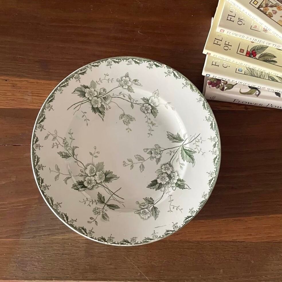 繊細なグリーンの花柄が美しい、フランス製アンティークプレート「ROSETTE」のご紹介です。